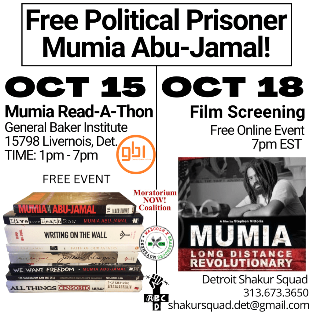 OCT 15 MUMIA READ-A-THON, 1-7pm EST, Detroit