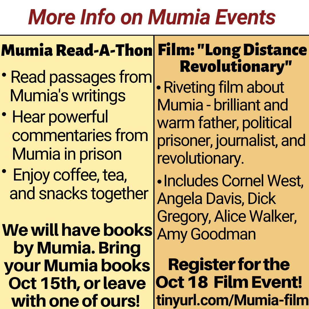 PLEASE post these Mumia event graphics on your social media! If you have passages from Mumia’s writings that you want to share for the Read-A-Thon, please print or send them on over! shakursquad.det@gmail.com