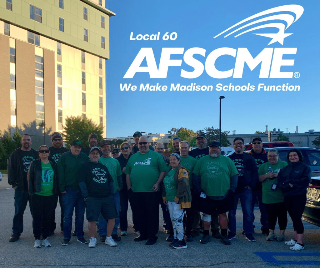 #solidarity with AFSCME, Local 60‘s custodial and maintenance workers in their fight for inclusion in the $5/hr wage increase provided to all other Madison Schools – MMSD hourly employees.
