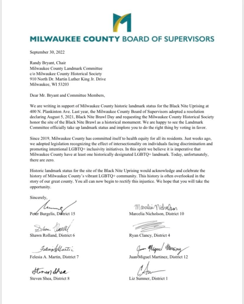 Categories Uncategorized Milwaukee County Supervisors Call on Landmark Committee to Designate Black Nite Uprising Site Post author By wibailoutpeople Post date October 9, 2022 Share this: Click to share on X (Opens in new window) X Click to share on Facebook (Opens in new window) Facebook Like Loading... Related ← COVID-19 mortality rate five times higher among labor, retail and service workers, study reveals; 68% of COVID-19 deaths during the first year of the pandemic were adults in low socioeconomic positions → We Rise Fighting! Labor Podcast: Interview With President of UAW 180 – On Strike Against CNHi (Case Holland)