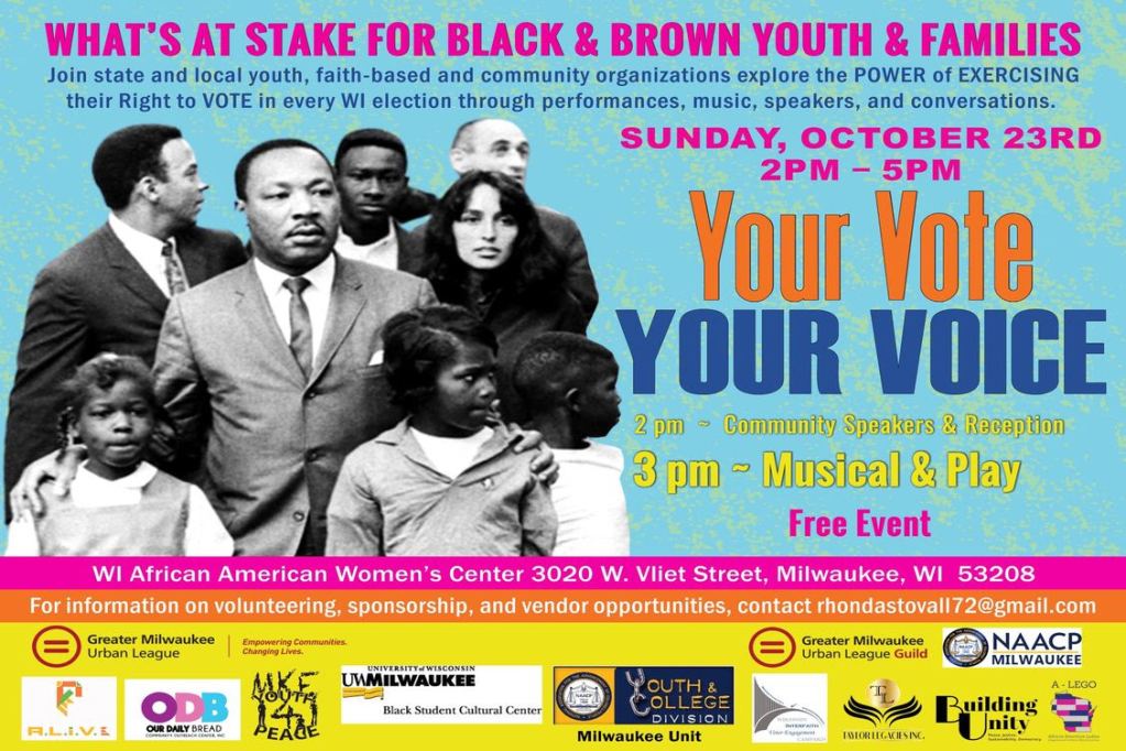 Categories Uncategorized Milwaukee, Oct. 23, 2022: “What’s at Stake for Black and Brown Youth and Families” Post author By wibailoutpeople Post date October 18, 2022 Share this: Click to share on X (Opens in new window) X Click to share on Facebook (Opens in new window) Facebook Like Loading... Related ← GOTV Opportunities In Wisconsin (Events Statewide Leading Up to November 8 Election Day) → Milwaukee, October 22, 2022: Ms. Lucille Berrien Park Celebration – One Year Anniversary of Park Renaming