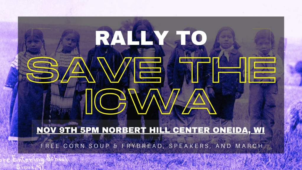 Please join us at the Norbert Hill Center cafeteria on November 9th at 5 pm to stand with the 500+ tribes defending the ICWA.