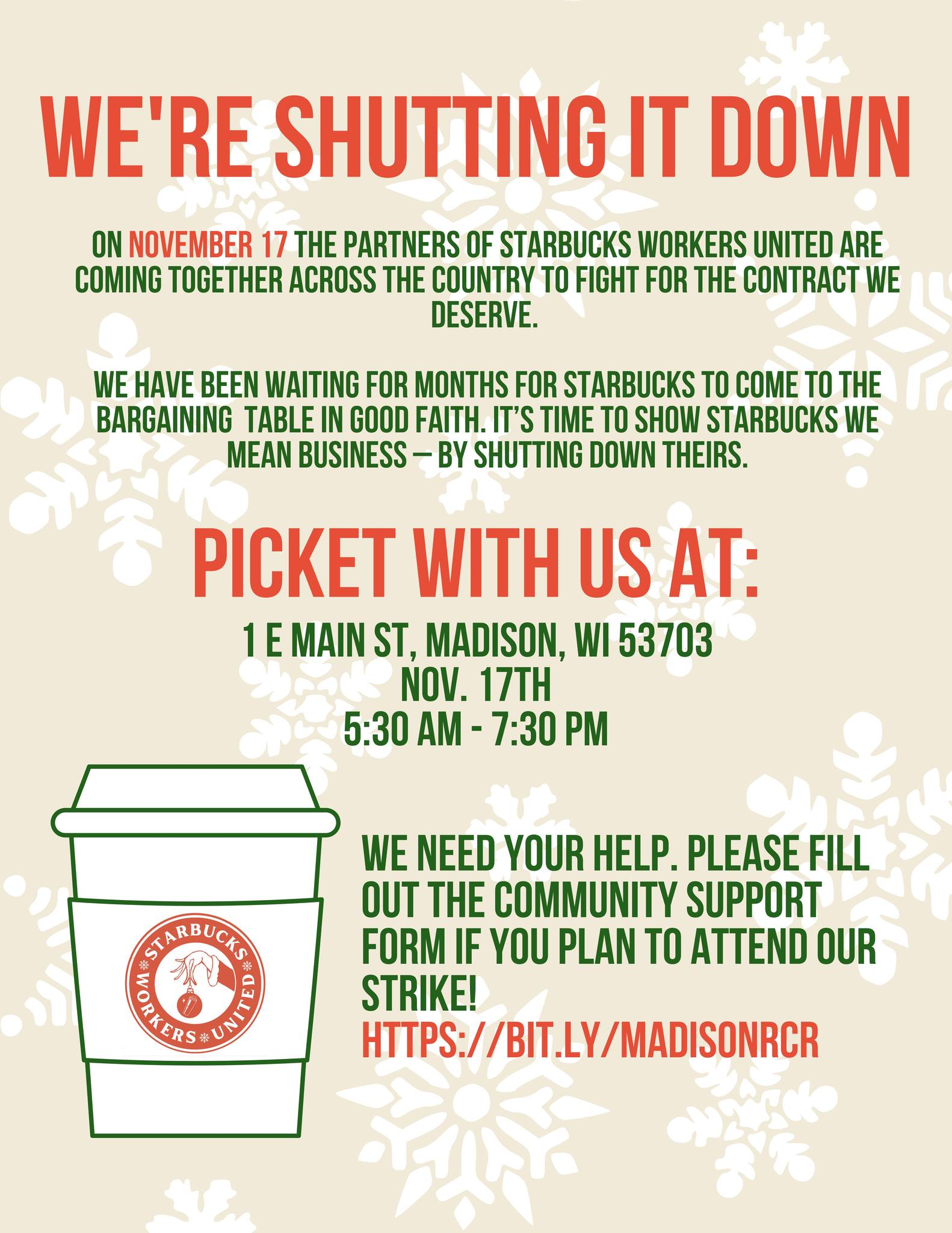 Starbucks thinks they can drag their feet in bargaining, and we’re here to show them we rebel against their tactics and we mean business – by shutting down theirs.