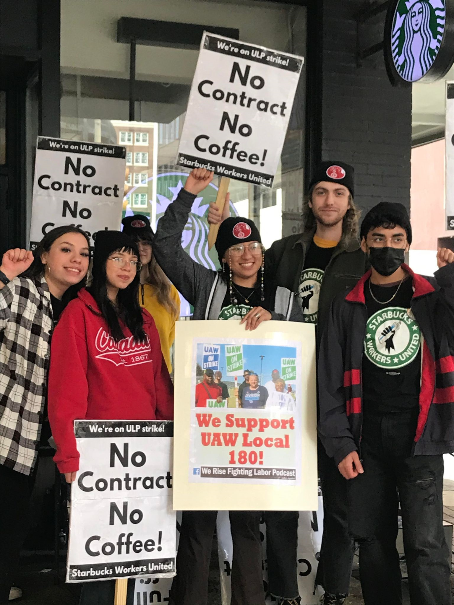 The workers are asking supporters to “join their fight by signing the #NoContractNoCoffee pledge to show Starbucks our communities support us too and donate to our Solidarity Fund to help us continue our efforts. Thank you!”