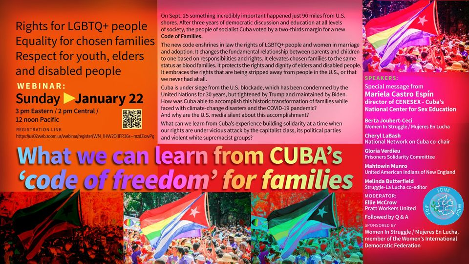 Sunday, January 22 — join us on Roe v Wade anniversary to discuss what we can learn from Cuba’s ‘code of freedom’ for families! #MejorSinBloqueo Register: https://us02web.zoom.us/…/reg…/WN_1HW2Ol1FR36s–mzdZxwPg