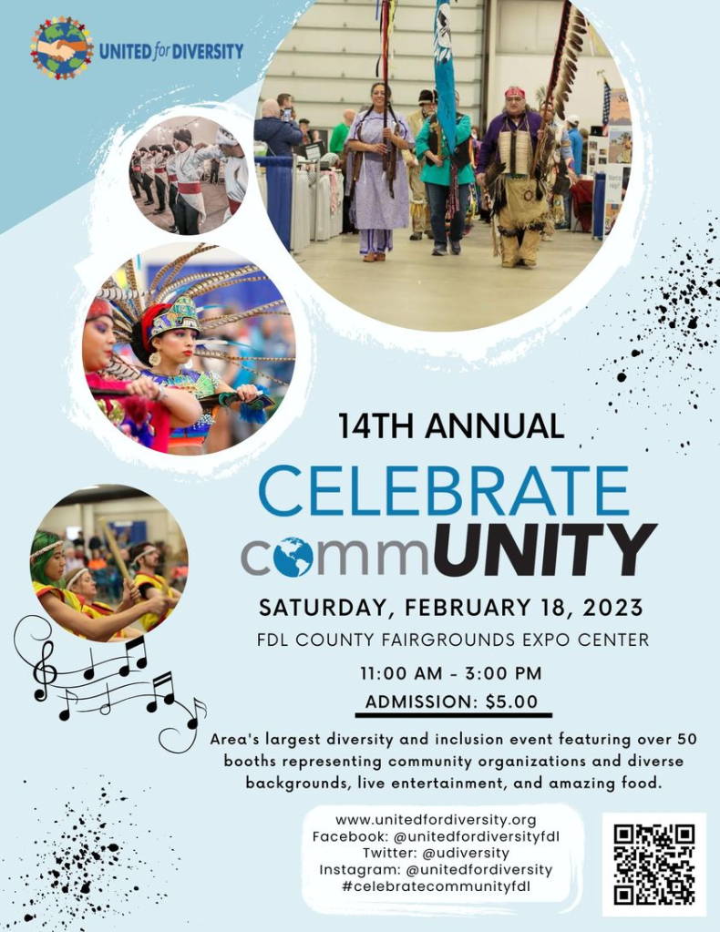 Categories Uncategorized Fond du Lac, Feb. 18, 2023: 14th Annual Celebrate Community Diversity & Inclusion Event Post author By wibailoutpeople Post date February 7, 2023 February 18th from 11:00 – 3:00 PM at the FDL County Fairgrounds Expo Center. We hope you join us to celebrate our community in all its wonderful diversity.#celebratecommunityfdl #liveentertainment #familyfunevent #fonddulac #wisconsin #familyfriendly United For Diversity Share this: Click to share on X (Opens in new window) X Click to share on Facebook (Opens in new window) Facebook Like Loading... Related ← We Rise Fighting! Labor Podcast – Black History Month, Part 1 → UE: Railroads Must Be Brought Under Public Ownership!