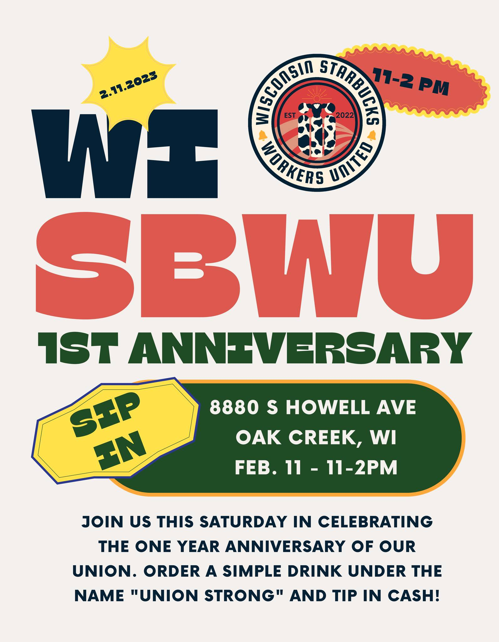 Categories Uncategorized Oak Creek, WI, Feb. 11, 2023: Starbucks Workers United Celebration Post author By wibailoutpeople Post date February 9, 2023 Share this: Click to share on X (Opens in new window) X Click to share on Facebook (Opens in new window) Facebook Like Loading... Related ← UE: Railroads Must Be Brought Under Public Ownership! → How America Took Out The Nord Stream Pipeline