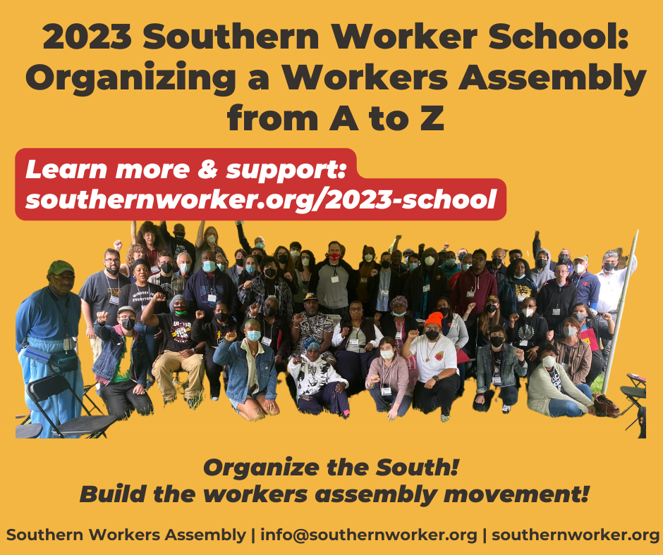 We encourage worker cadre and other activists engaged in building local workers assemblies to make plans to attend the school in Charlotte. If you are part of a workers assembly or otherwise part of the Southern Workers Assembly network, you will receive the registration link separately.