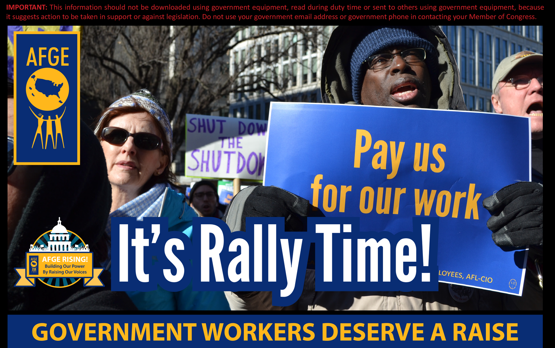 AFGE Federal Worker Pay Increase Rally: Tue, February 14, 12pm – 1pm