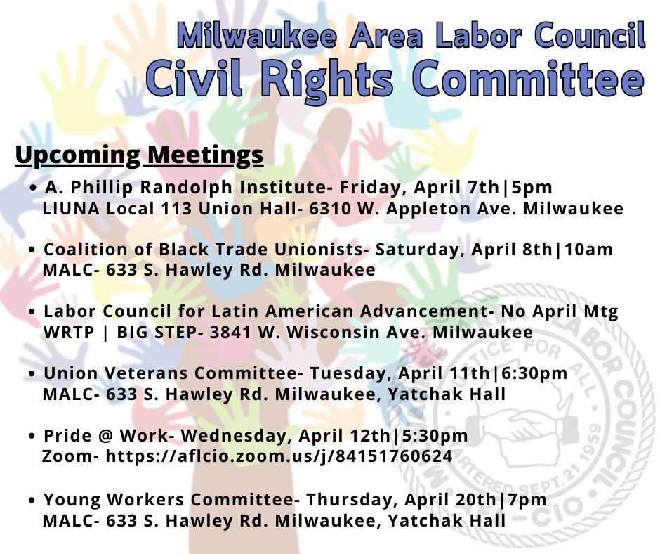 Categories Uncategorized Milwaukee Area Labor Council Civil Rights Committee – April 2023 Meetings Post author By wibailoutpeople Post date April 2, 2023 Milwaukee Area Labor Council https://milwaukeelabor.org/civil-rights-committee/ Share this: Click to share on X (Opens in new window) X Click to share on Facebook (Opens in new window) Facebook Like Loading... Related ← ITHAKA Moving Screening April 8, 2023 – Julian Assange’s Father and Brother In Person at The Oriental Theatre → Milwaukee, May 6, 2023: No to NATO! Teach-In on Their Crimes
