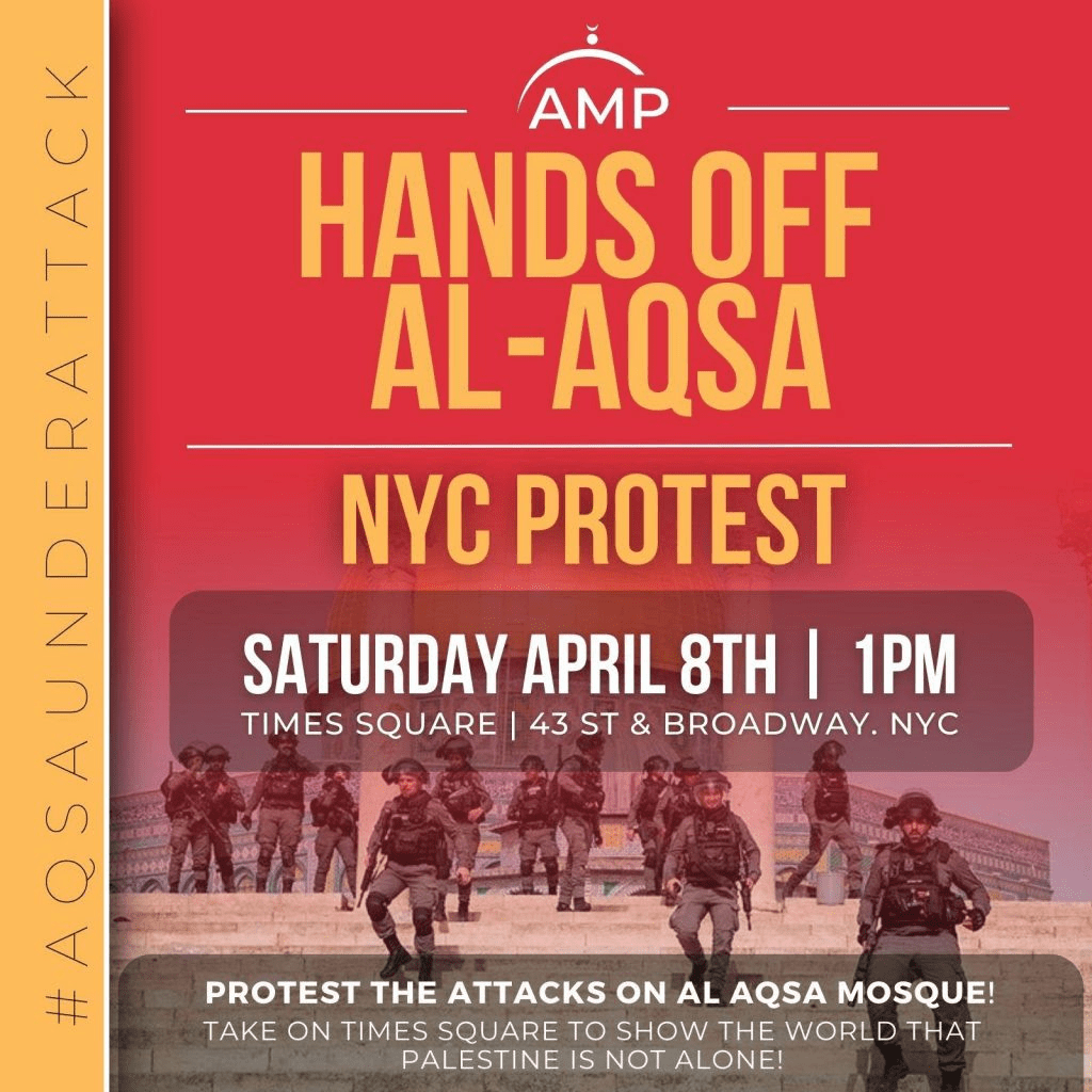 | New York City: Protest the attacks on Al-Aqsa Mosque! Free Palestine! Saturday, April 8 – 1:00 p.m. Times Square, 43rd St. & Broadway, Manhattan Take on Times Square to show the world that Palestine is […] Read more Struggle – La Lucha |