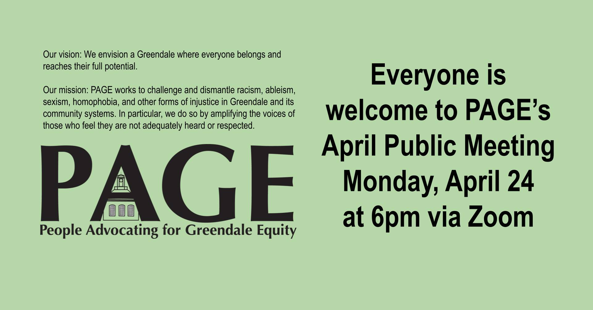 Categories Uncategorized Greendale, WI April 29, 2023: PAGE April Public Meeting (Online) Post author By wibailoutpeople Post date April 13, 2023 PAGE – People Advocating for Greendale Equity Event by PAGE – People Advocating for Greendale Equity Share this: Share on X (Opens in new window) X Share on Facebook (Opens in new window) Facebook Like Loading... Related ← Teamsters to UPS: No National Talks Until Supplemental Contracts Resolved → Toronto, April 27, 2023: Screening of ‘Haiti Betrayed’