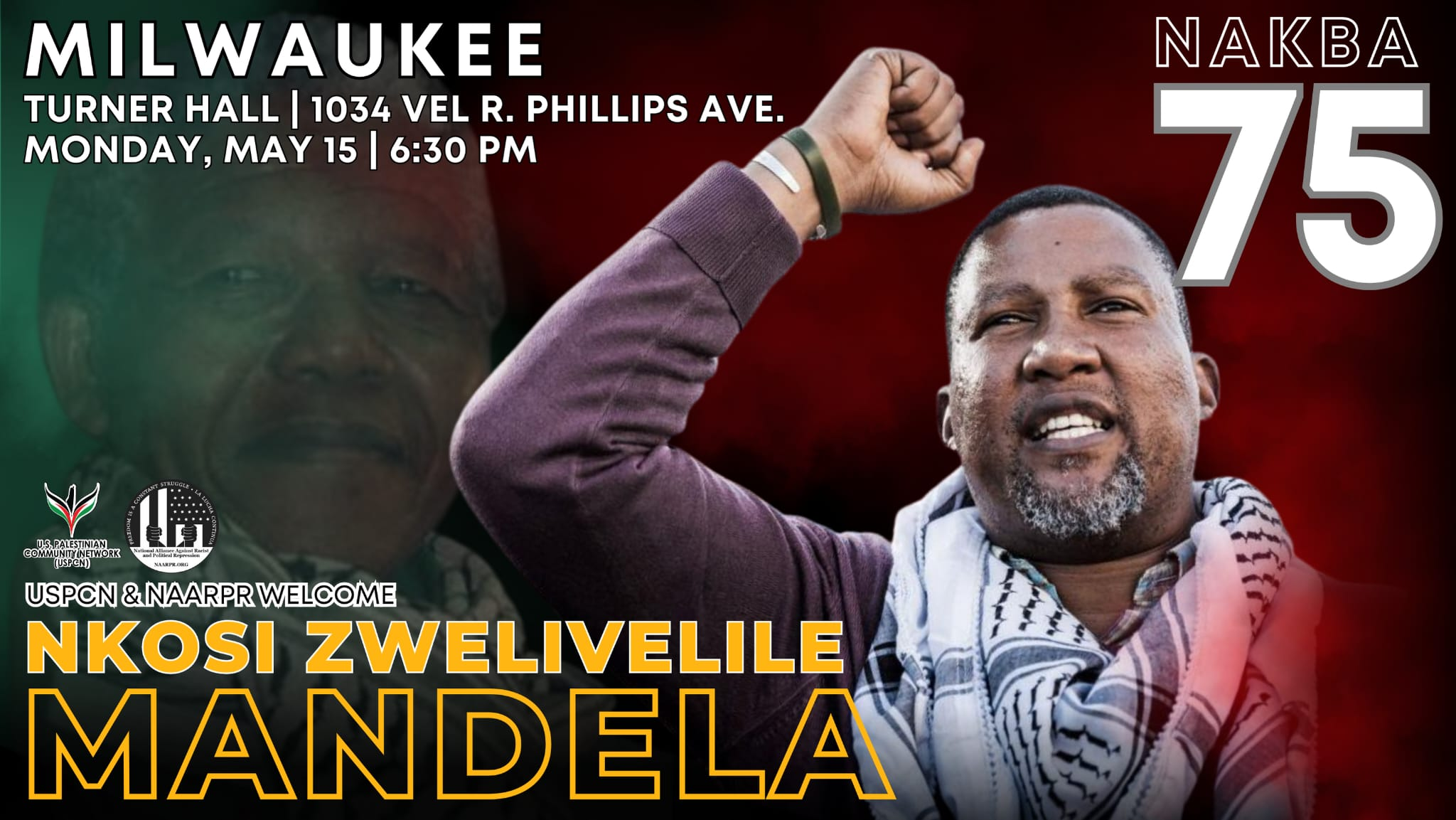 To commemorate the Nakba, the U.S. Palestinian Community Network (USPCN) and the National Alliance Against Racist and Political Repression (NAARPR) have arranged a brief U.S. Nakba Day 75 tour, to take place from May 15th – May 20th, featuring Nkosi Zwelivelile Mandela, elected member of the South African National Assembly representing the African National Congress – and grandson of the late Nelson Mandela – as the tour’s keynote speaker.