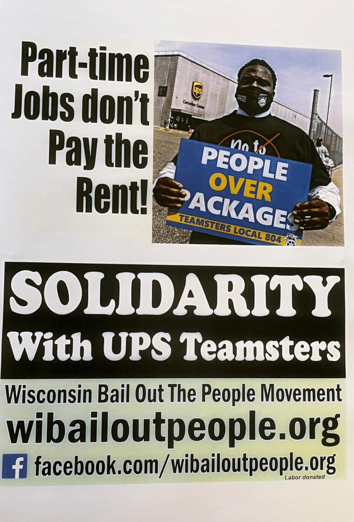 Categories Uncategorized Solidarity With Teamsters Campaign at UPS – Contract Campaign Underway! Join Actions Across the U.S. – Strike Ready! Post author By wibailoutpeople Post date May 18, 2023 Teamsters Wisconsin: Teamsters Local Union No. 344 Teamsters National: Teamsters Share this: Click to share on X (Opens in new window) X Click to share on Facebook (Opens in new window) Facebook Like Loading... Related ← Milwaukee, May 29, 2023: Black Lives Matter Mad Moms Memorial March → Menekaunee Harbor Park to Green Bay – Creation Water Walk May 27-28-29, 2023
