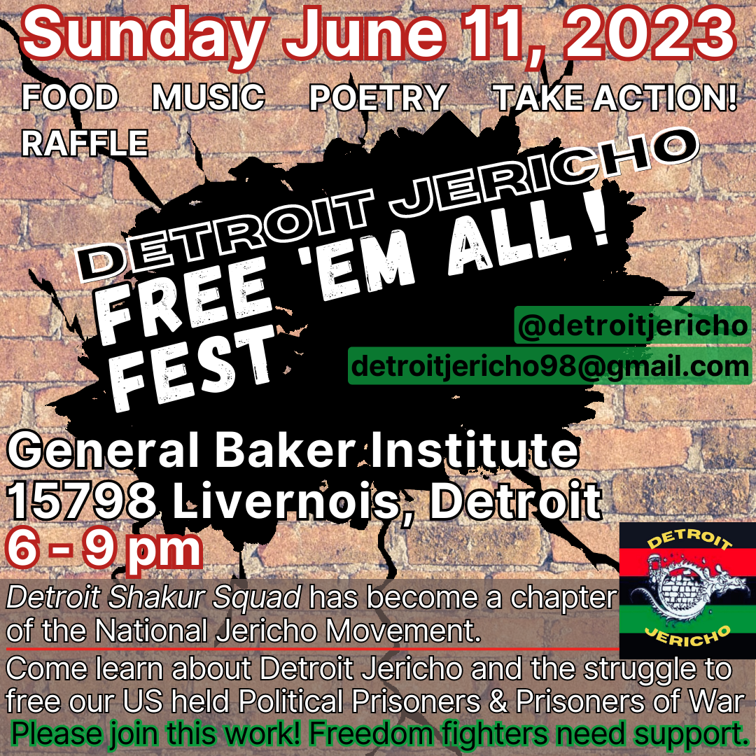 There will be some actions you can take on the spot for our freedom fighters. Detroit Jericho would love for you to get involved in the work for their liberation.