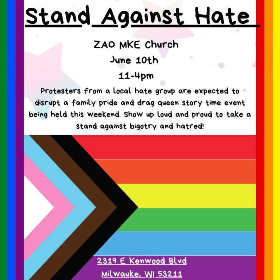Categories Uncategorized Family Pride Event at Zao Church in Milwaukee June 10, 2023 – Stand Against Hate! Post author By wibailoutpeople Post date June 9, 2023 Family Pride Event at Zao Church June 10 at Noon Share this: Click to share on X (Opens in new window) X Click to share on Facebook (Opens in new window) Facebook Like Loading... Related ← African Union Advances Peace Plan for Sudan after the Failure of U.S.-Saudi Mediation → Venezuela & ALBA News 6.9.2023: Venezuela a Leader in the Struggle to Build a Multipolar World