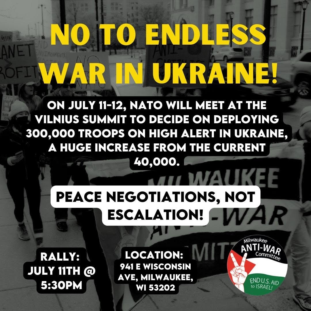 Today, 7/11 and tomorrow, 7/12, NATO will meet at the Vilnius Summit to decide on deploying 300,000 additional troops on high alert around Ukraine. The warmongering and brinkmanship by NATO in the name of geopolitical power and profit is unacceptable.