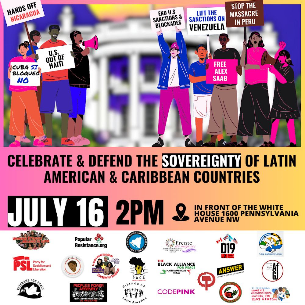 Categories Uncategorized Washington D.C., July 16, 2023: Celebrate & Defend the Sovereignty of Latin American & Caribbean Countries! Post author By wibailoutpeople Post date July 14, 2023 Share this: Click to share on X (Opens in new window) X Click to share on Facebook (Opens in new window) Facebook Like Loading... Related ← Madison, July 22, 2023: People’s Justice Summit! → Free Walid Daqqah!