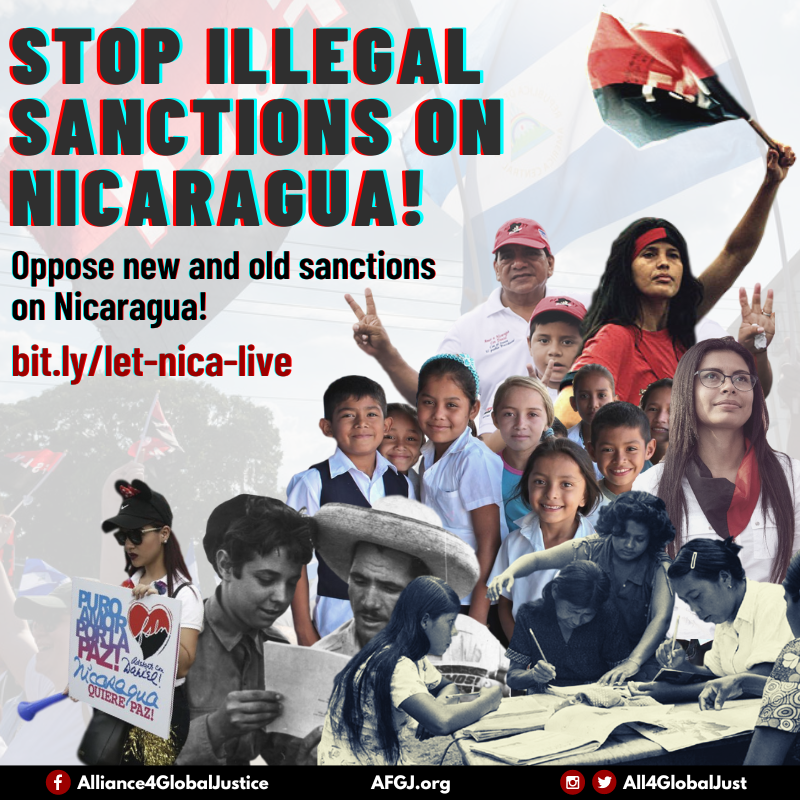 The new sanctions seek to restrict loans for economic development from the Central American Bank for Economic Integration (CABEI) which funds roads, water and energy projects, and housing in the country. The old sanctions stopped most loans from the IMF, World Bank and the IDB. Now the U.S. wants to stop the CABEI loans as well! All these restrictions should be lifted!