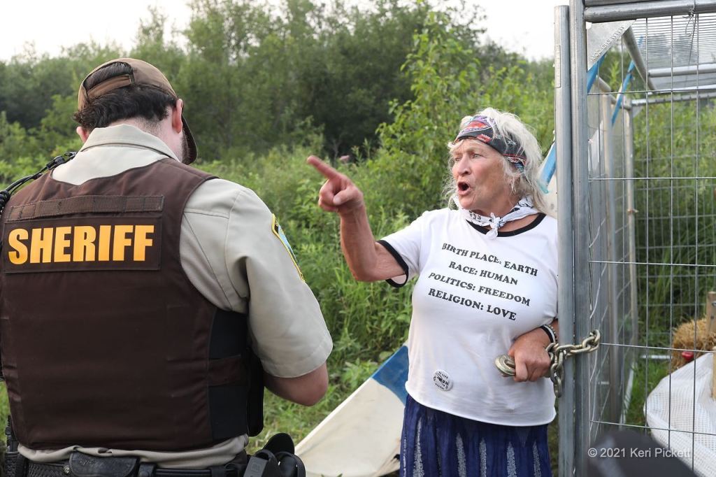 Why: Support Bad Ass Grandma Jill during her pre-trial zoom hearing for her upcoming jury trial in Clearwater County, where she took her third stand to protect our sacred water at the Mississippi Headwaters. She’s already paid a terrible price of chronic pain and permanent injury. Jill reported that during her hearing in April, she broke down watching the video of her arrest over and over and was greatly consoled by the presence of so many of you.