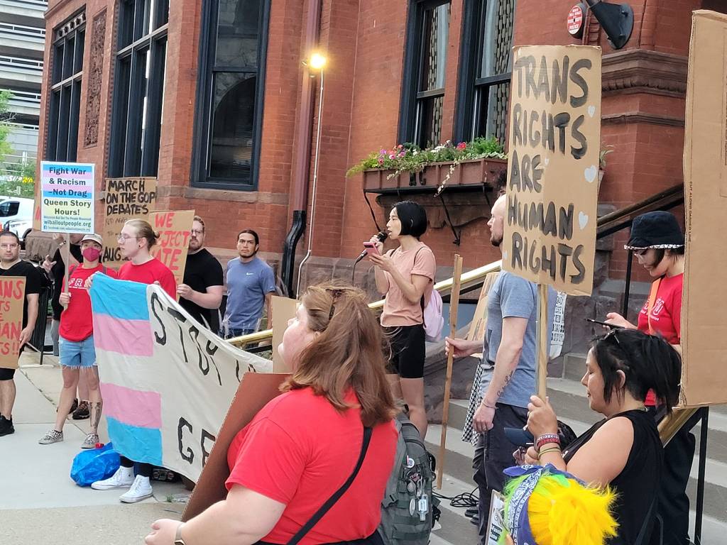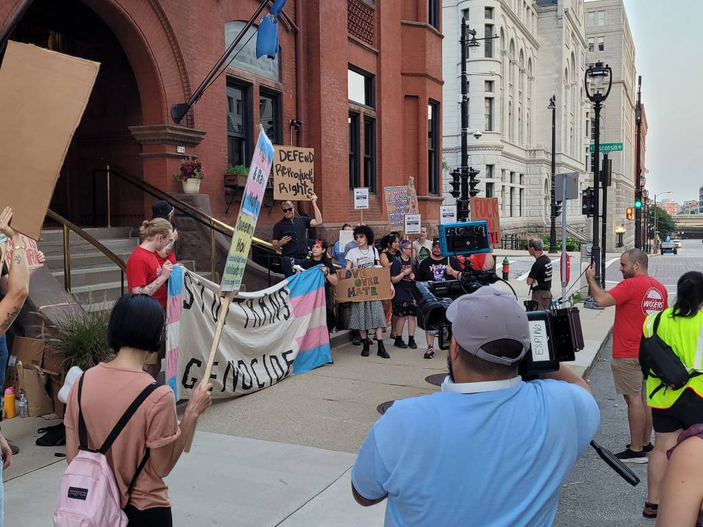 Categories Uncategorized Protestors Denounce Anti-Trans Bigots “Training” at Pfister Hotel in Milwaukee, WI Post author By wibailoutpeople Post date August 23, 2023 August 22, 2023, Milwaukee, WI August 22, 2023, Milwaukee, WI. Photos: Coalition to March on the RNC 2024 Share this: Share on X (Opens in new window) X Share on Facebook (Opens in new window) Facebook Like Loading... Related ← Young America’s Foundation has Deep Racist/Fascist Roots – Former Wisconsin Governor Scott Walker is YAF President → SEIU Wisconsin, Voces de la Frontera and Other Labor-Community Organizations to Protest RNC Debate August 23, 2023