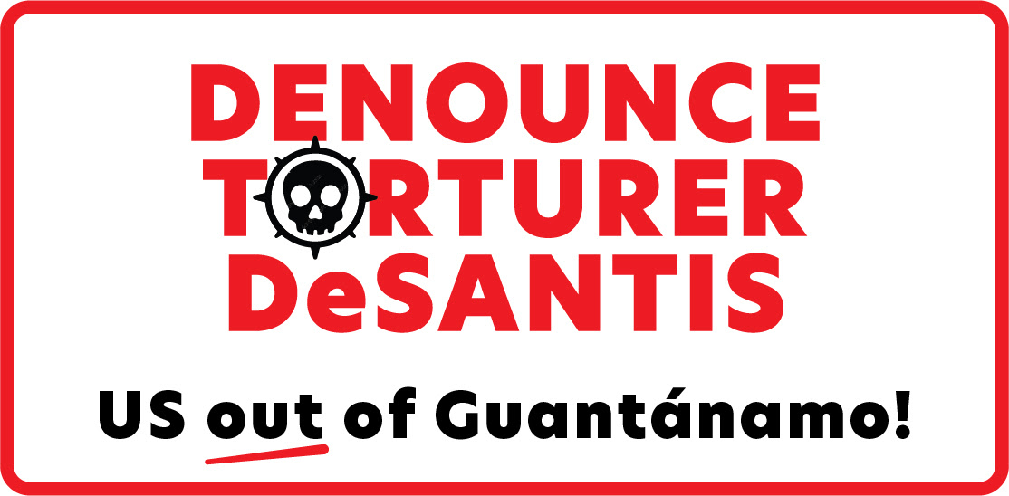 Categories Uncategorized Denounce Torturer DeSantis! – U.S. Out of Guantanamo! Post author By wibailoutpeople Post date September 1, 2023 Read more here! Share this: Click to share on X (Opens in new window) X Click to share on Facebook (Opens in new window) Facebook Like Loading... Related ← Happy Labor Day! – We Demand Bread, But We Need Roses Too! → Golden Rule Peace Boat in Milwaukee September 1-4, 2023