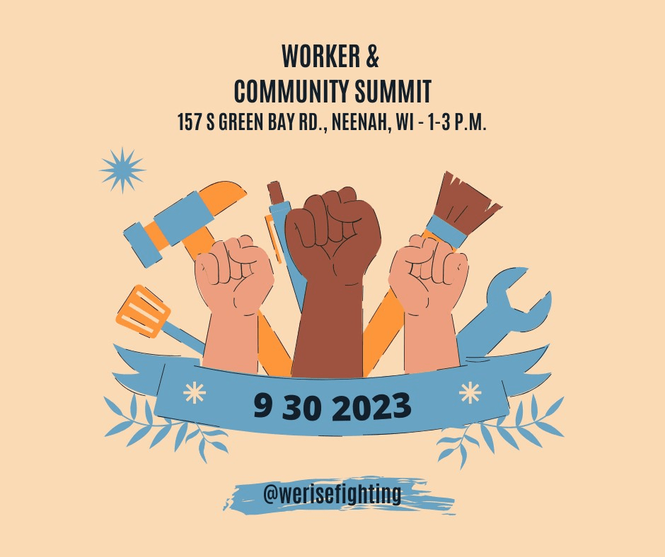 – Upcoming labor and community events such as the WI Network for Peace and Justice Annual Assembly in Appleton October 28, the November 2 commemoration of the 1898 Oshkosh Woodworkers strike and Building Unity activities.