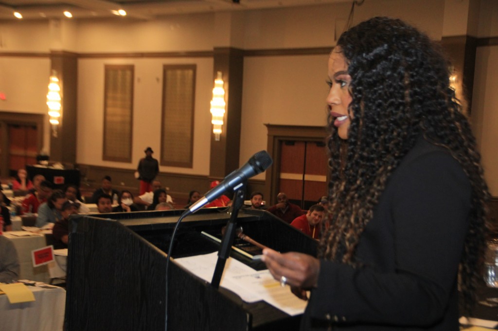 Delegates also heard from Congresswoman Summer Lee (D-PA). Lee was first elected to the Pennsylvania state house, defeating an incumbent establishment Democrat, with the support of only one union — UE. Since then, Lee said, the working-class political movement in Pittsburgh has elected “a new mayor, a new county executive, new council members, and new people at all levels of government.