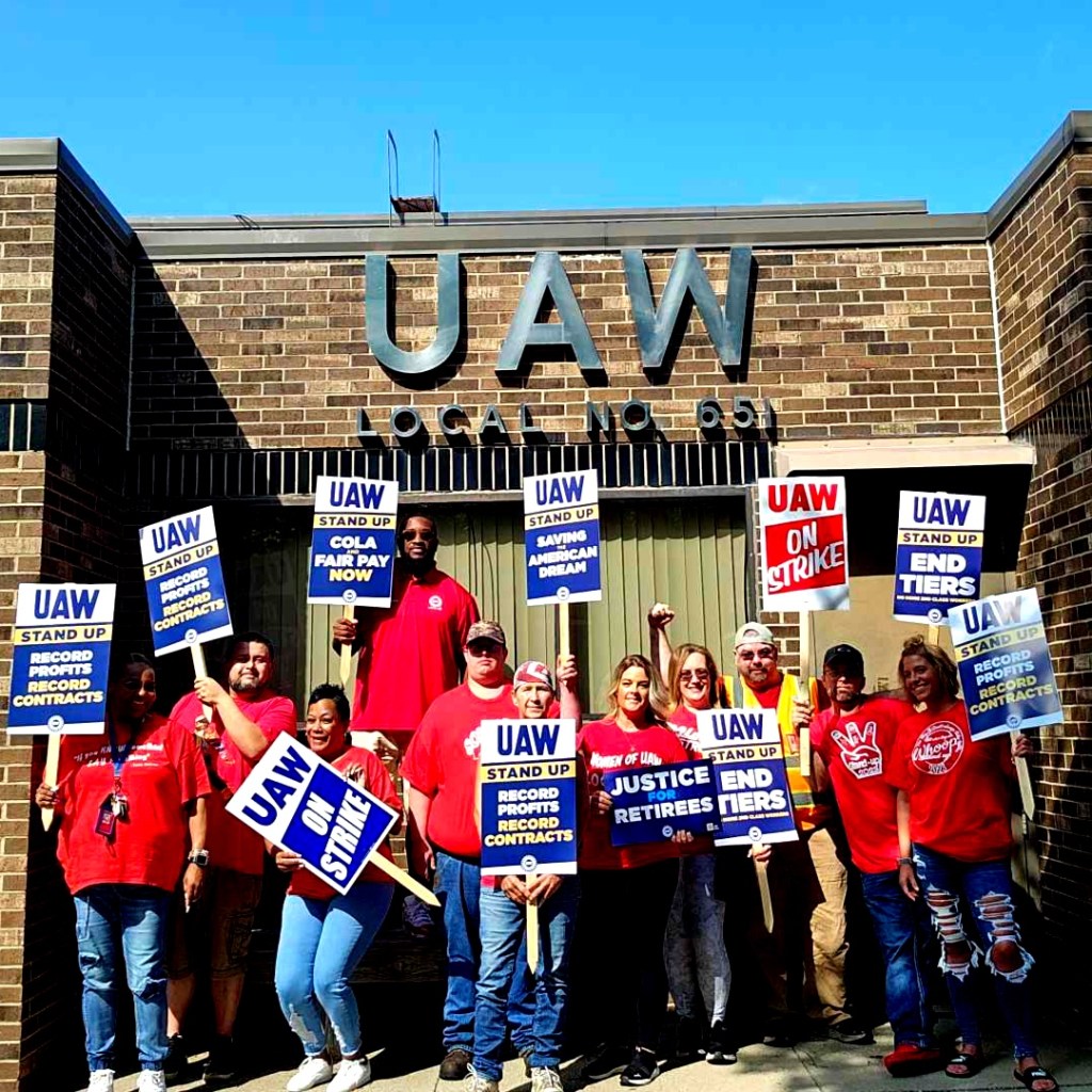 Categories Uncategorized UAW Members at the Big 3 Expand Strike to More Locations Nationwide! Post author By wibailoutpeople Post date September 22, 2023 UAW International Union linktr.ee/uawunion Members of #UAW Local 651 (Region 1D) are ready to stand up!#StandUpUAW Share this: Share on X (Opens in new window) X Share on Facebook (Opens in new window) Facebook Like Loading... Related ← Los Angeles: Cuba in Africa Film Showing September 24, 2023 → Center for Labor & Community Studies at UMich Dearborn Stands in Solidarity with the UAW!