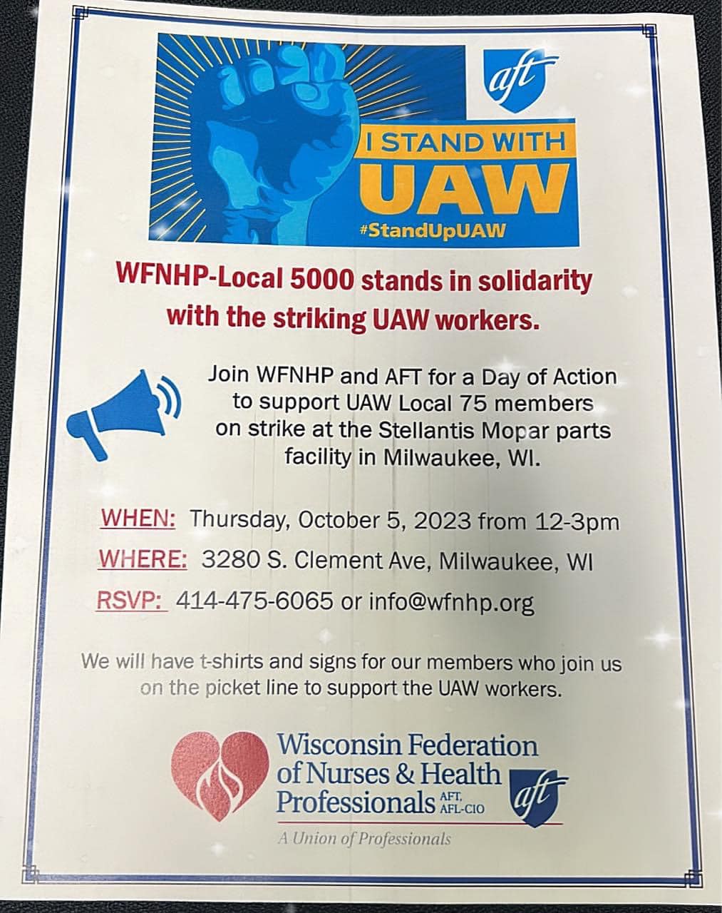 Categories Uncategorized Milwaukee, October 5, 2023: AFT Day of Action to Support UAW Local 75 Members on Strike! Post author By wibailoutpeople Post date September 28, 2023 Wisconsin Federation of Nurses and Health Professionals Share this: Click to share on X (Opens in new window) X Click to share on Facebook (Opens in new window) Facebook Like Loading... Related ← Seymour Hersh: “It’s All Lies. The War Is Over. Russia Has Won.” → Mumia Abu-Jamal: Remembering MOVE on Film