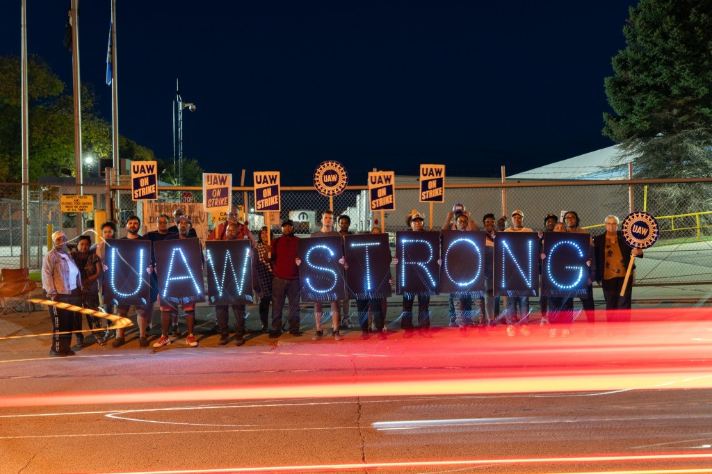 We’re shining strong in solidarity with striking UAW Local 75 workers on the picket line at Stallantis Mopar Parts Distribution in Milwaukee and across the country. Workers are demanding a pay raise at a time when the big three automakers, Ford, GM and Stellantis/Chrysler have raked in a quarter of a trillion dollars in profits over the last 10 years and while the heads of those same companies make 300 times what the workers make. We will hold the line with them in their #StandUpStrike until their demands are met.