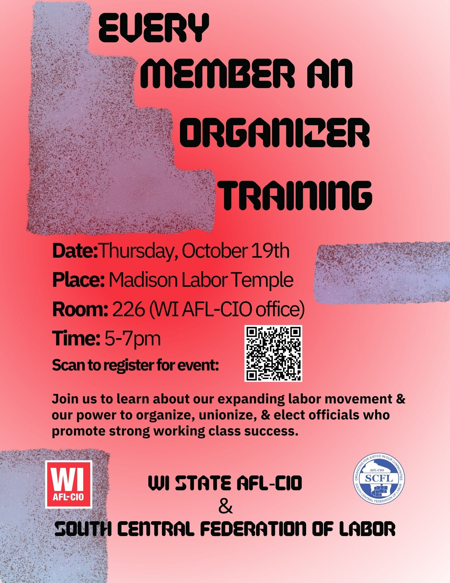 Join us for this free training to learn about our expanding labor movement and our power to organize, unionize & elect offiicials who promote strong working class success. Also at this training we will: