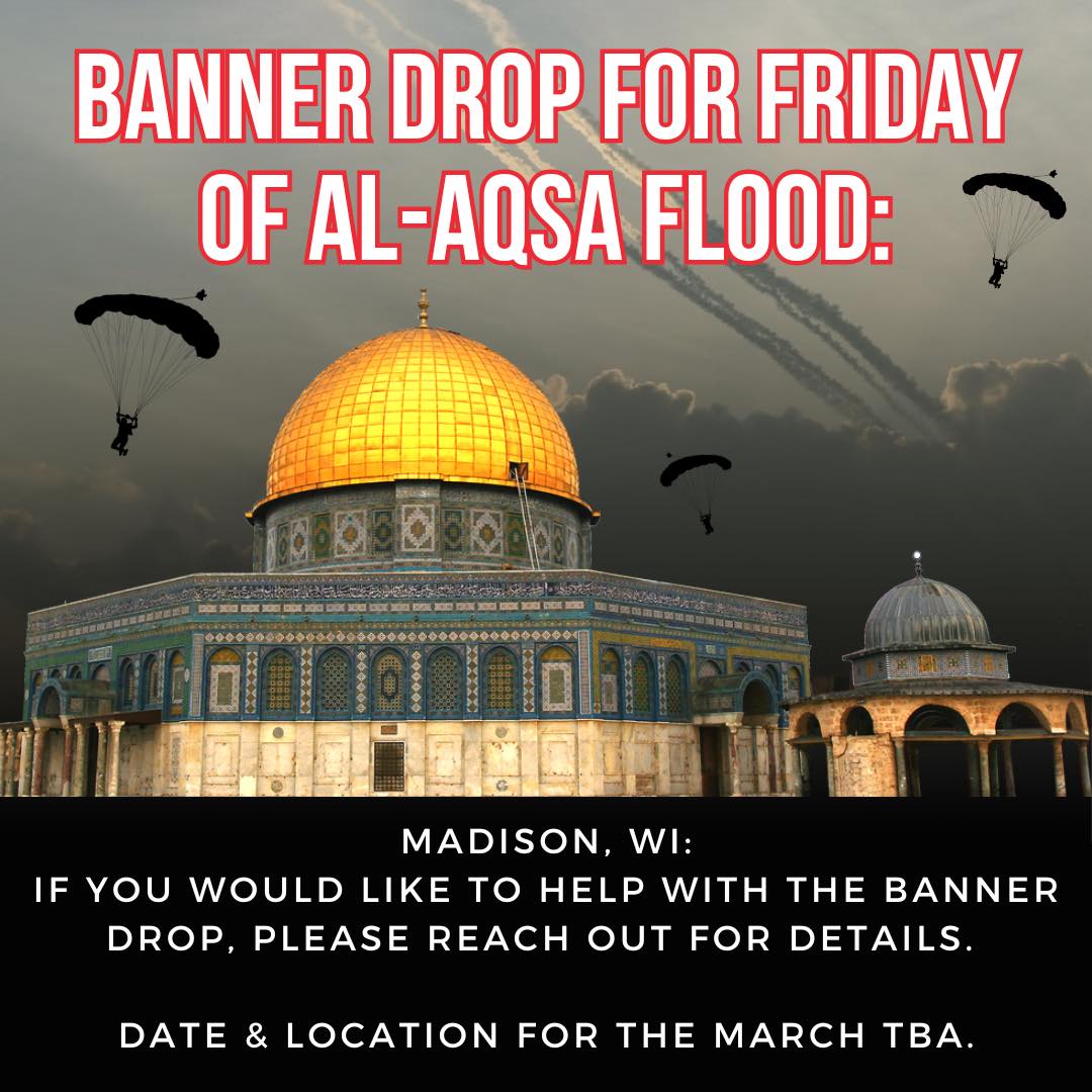 Categories Uncategorized Madison: Banner Drops for Palestine! Post author By wibailoutpeople Post date October 13, 2023 Madison for Palestine Share this: Share on X (Opens in new window) X Share on Facebook (Opens in new window) Facebook Like Loading... Related ← Israeli attacks wipe out 44 Gaza families → Al-Nakba: The Palestinian catastrophe – Episodes 1 & 2 | Featured Documentary