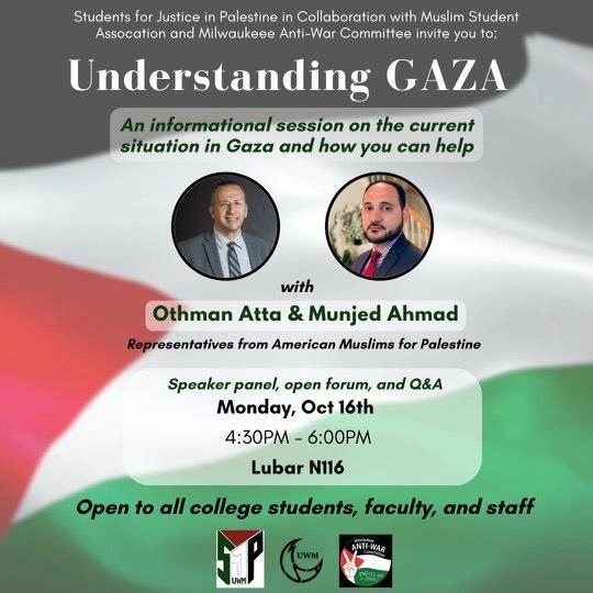 Categories Uncategorized UW-Milwaukee, October 16, 2023: Understanding Gaza Post author By wibailoutpeople Post date October 15, 2023 Share this: Share on X (Opens in new window) X Share on Facebook (Opens in new window) Facebook Like Loading... Related ← World Federation of Trade Unions (WFTU): Solidarity campaign with the Palestinian People! → UW Madison, October 16, 2023: Arab Women’s Revolutionary Art: Between Singularities and Multitudes