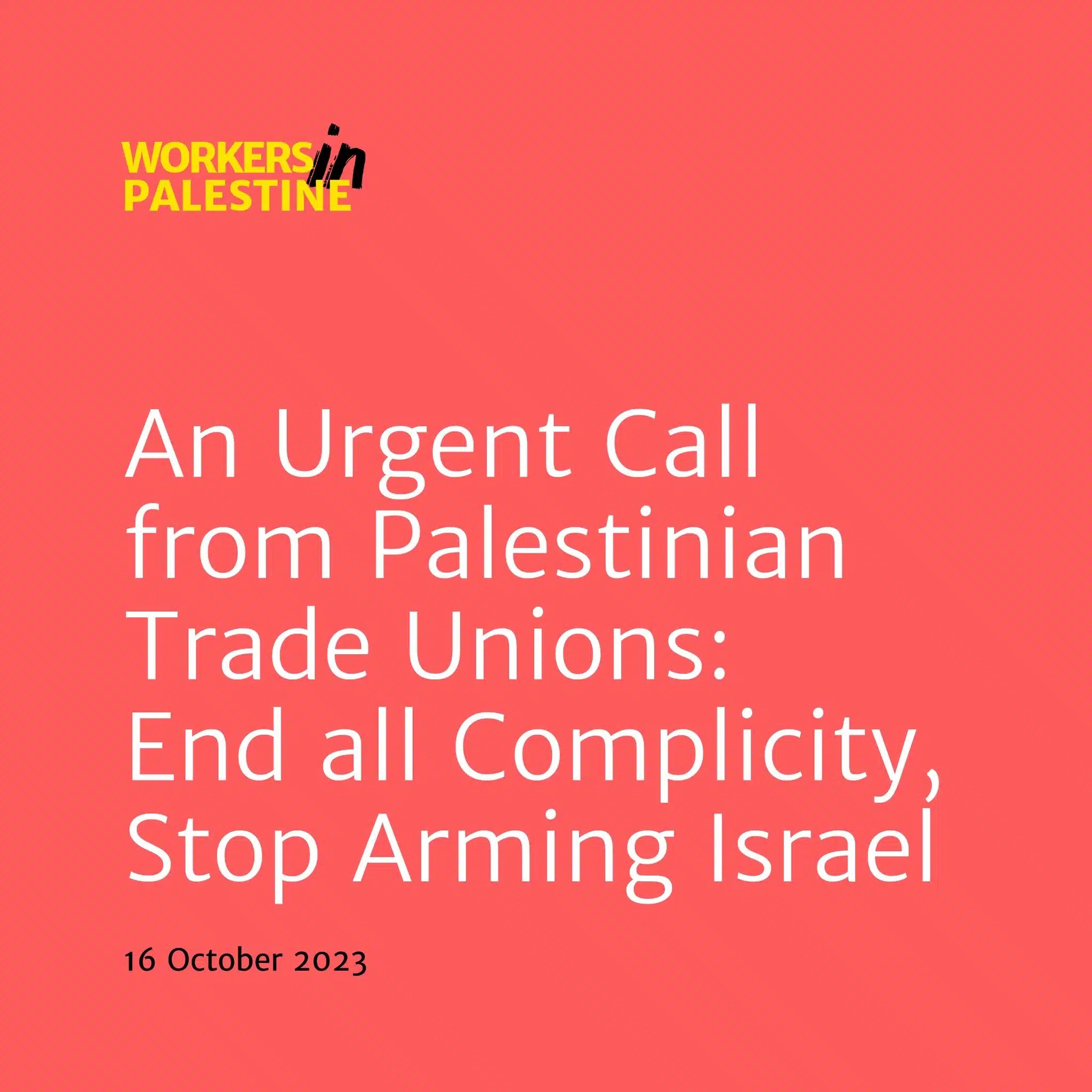 As Israel escalates its military campaign, Palestinian trade unions call on our counterparts internationally and all people of conscience to end all forms of complicity with Israel’s crimes — most urgently halting the arms trade with Israel, as well as all funding and military research. The time for action is now — Palestinian lives hang in the balance.