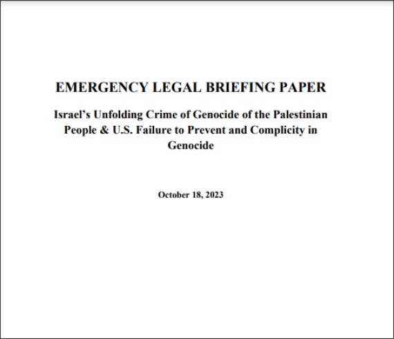 As scholars and observers increasingly warn of genocide, and as protestors rise up against Israel’s gravest atrocities against Palestinians since 1948, the Center for Consitutional Rights has been asked by Palestinian partners on the ground to offer this analysis as we strengthen our collective efforts towards accountability and freedom. The emergency briefing paper calls on the United States to take all necessary measures to secure a ceasefire, pressure Israel to end all military operations, end all U.S. military aid to Israel, and ensure the provision to Palestinians in Gaza of urgently needed basic necessities for life. The experts also stress in the briefing paper the urgent need to address the root causes of the current catastrophe, especially the 16-year closure of Gaza, the 56-year illegal occupation, and the apartheid regime across all of historic Palestine.