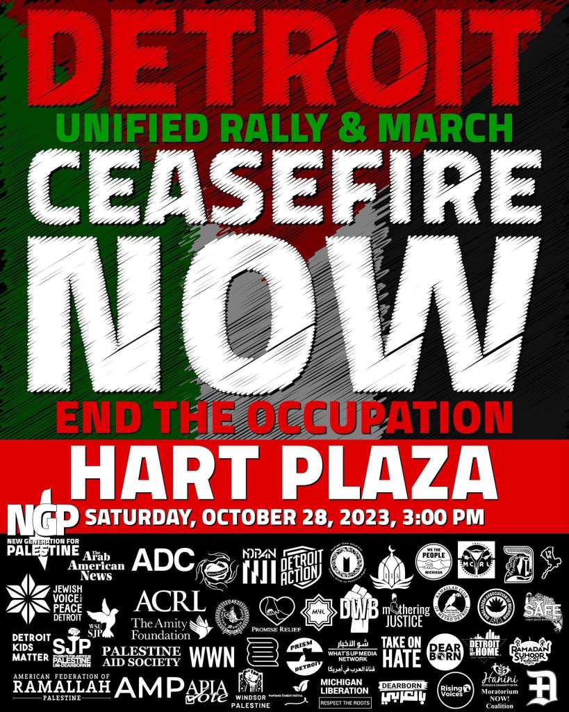 Categories Uncategorized Detroit, October 28, 2023: Rally & March for Palestine! End the U.S.-Israeli Occupation! Post author By wibailoutpeople Post date October 28, 2023 Share this: Click to share on X (Opens in new window) X Click to share on Facebook (Opens in new window) Facebook Like Loading... Related ← Milwaukee, October 28, 2023: Stop U.S. Intervention in Haiti! – Free Palestine! → Milwaukee: Banner Drops for Palestine!