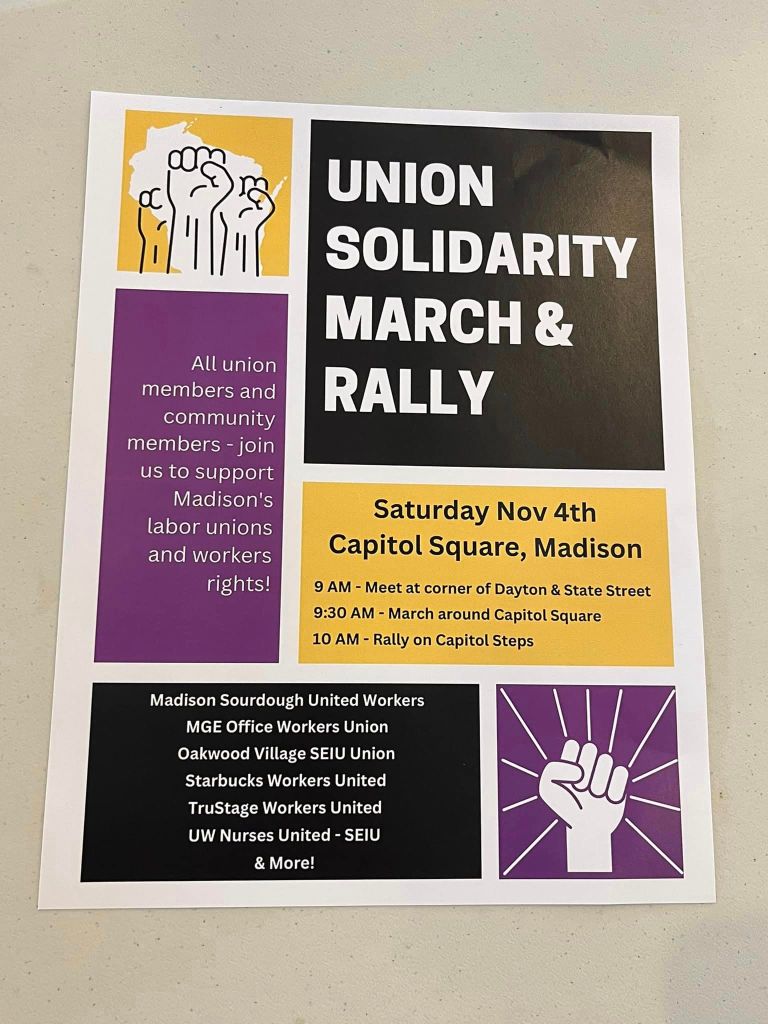 Union & Community Solidarity March and Rally, Saturday, November 4, 2023 at the State Capitol in Madison, Wisconsin. Event: https://fb.me/e/7zGjZ1ydY