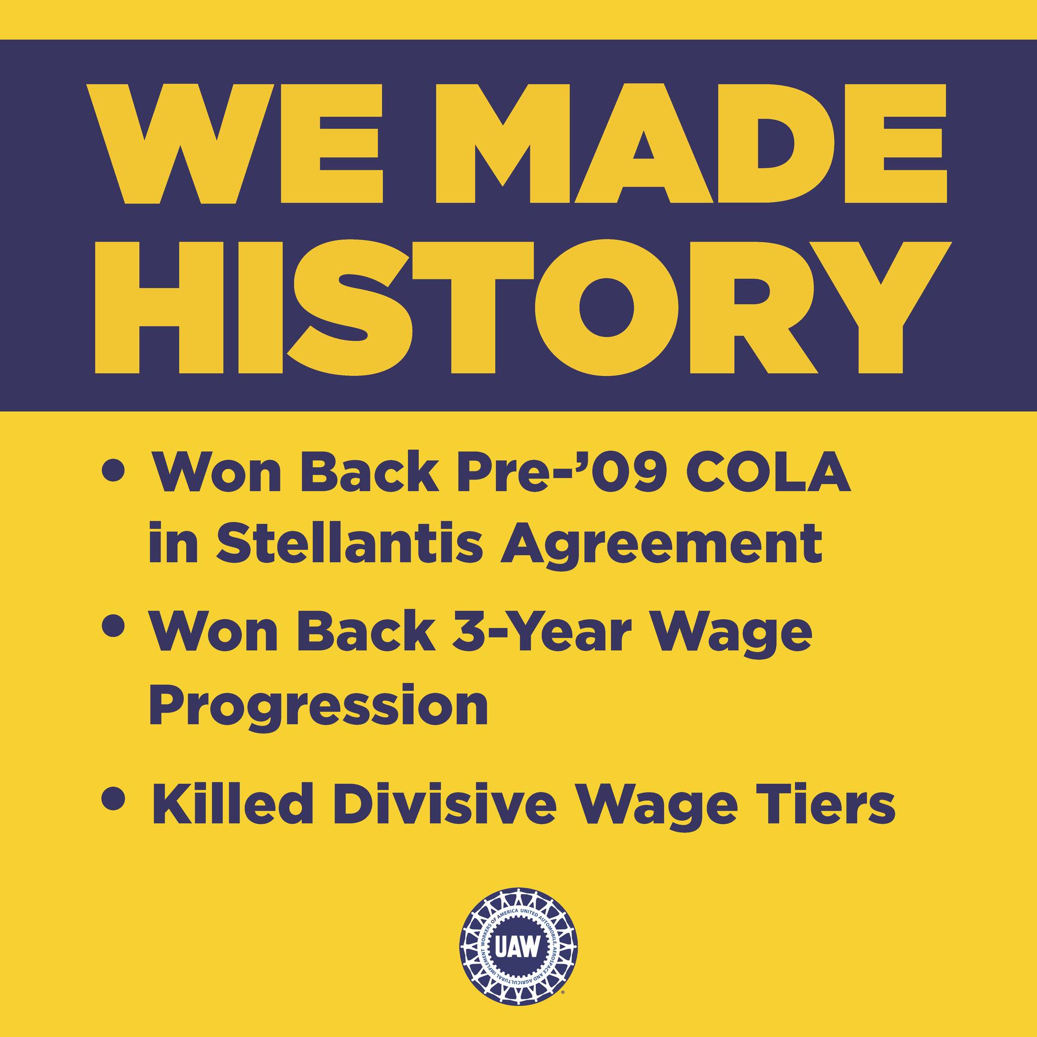 Categories Uncategorized UAW Reaches Tentative Agreement with Stellantis Post author By wibailoutpeople Post date October 29, 2023 Check out some of the details of the tentative agreement at Stellantis. #StandUpUAW UAW International Union Share this: Click to share on X (Opens in new window) X Click to share on Facebook (Opens in new window) Facebook Like Loading... Related ← From Lidice, 1942 to Gaza, 2023: What Hitler Taught Netanyahu → Madison, November 4, 2023: Union & Community Solidarity March & Rally