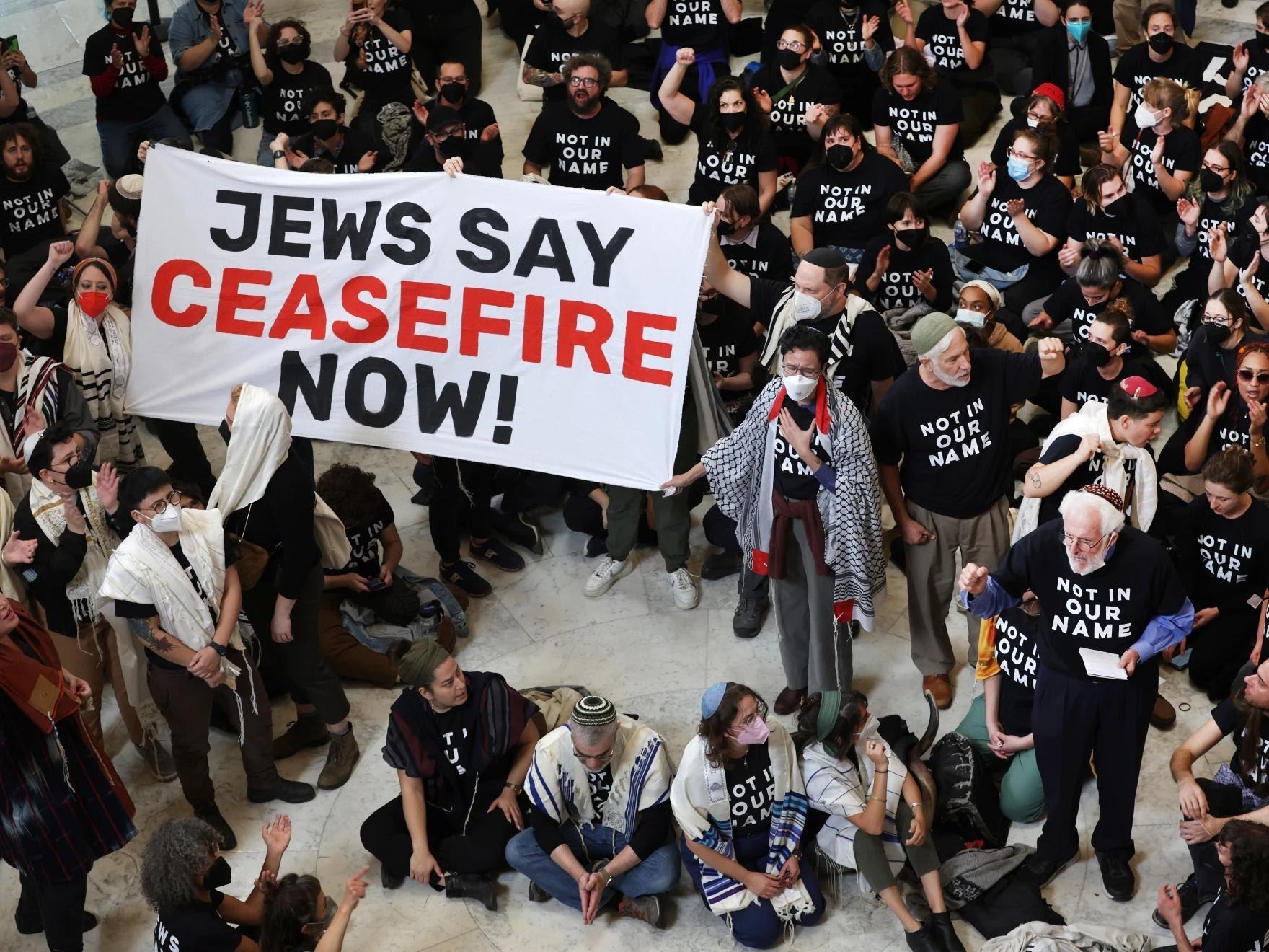Why? Because on October 18, over 500 Jews and allies sat on the floor of a Congressional house office building, in prayer and song, to demand an immediate ceasefire to save Palestinian and Israeli lives and to stop the Israeli military’s genocide of Palestinians in Gaza.