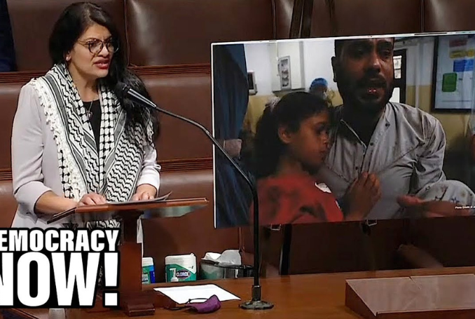 Holding a photograph, Tlaib said: “My grandmother, like all Palestinians, just wants to live her life with freedom and human dignity we all deserve.
