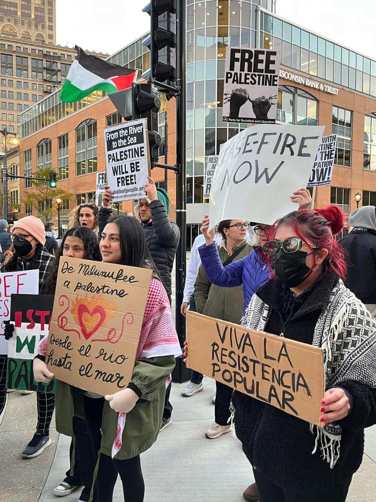 Standing for Peace on the Saturdays throughout November, the 18th and the 25th, 2023, 12:30-1:30 pm at the MLK Plaza, 909 Dr. Martin Luther King, Jr. Drive, Racine WI 53404. We have signs and banners for all! JOIN US! We also remind everyone to continue to call your representatives a number of times a week—-for a CEASEFIRE NOW.