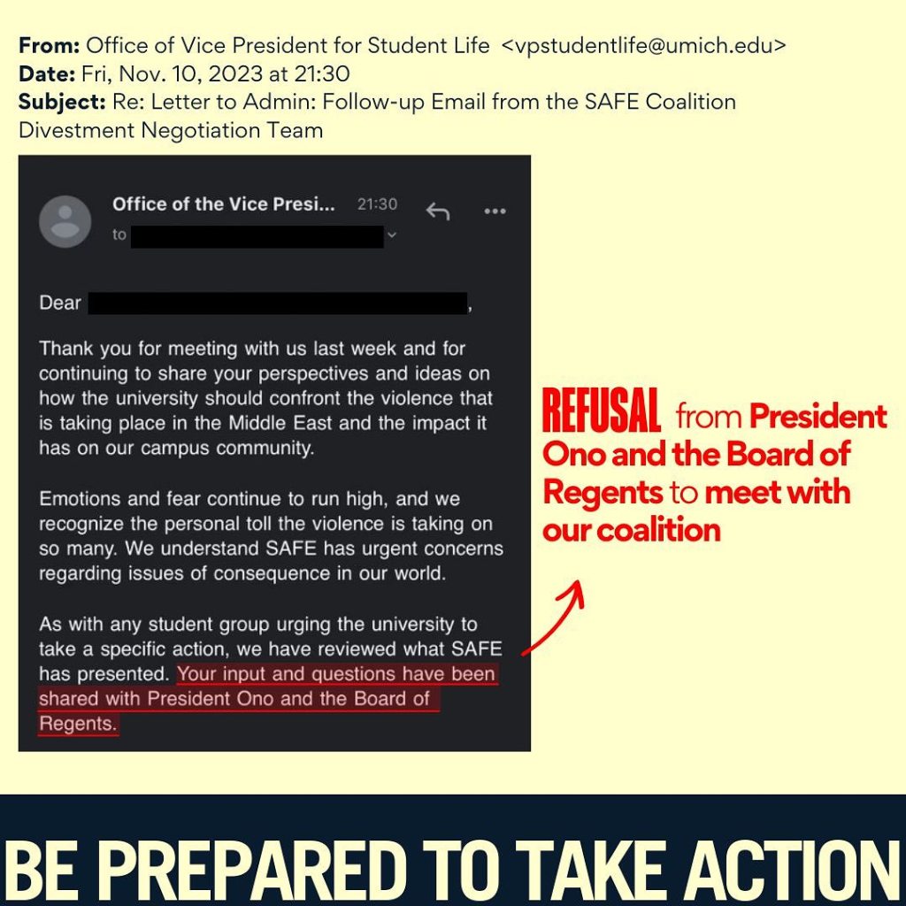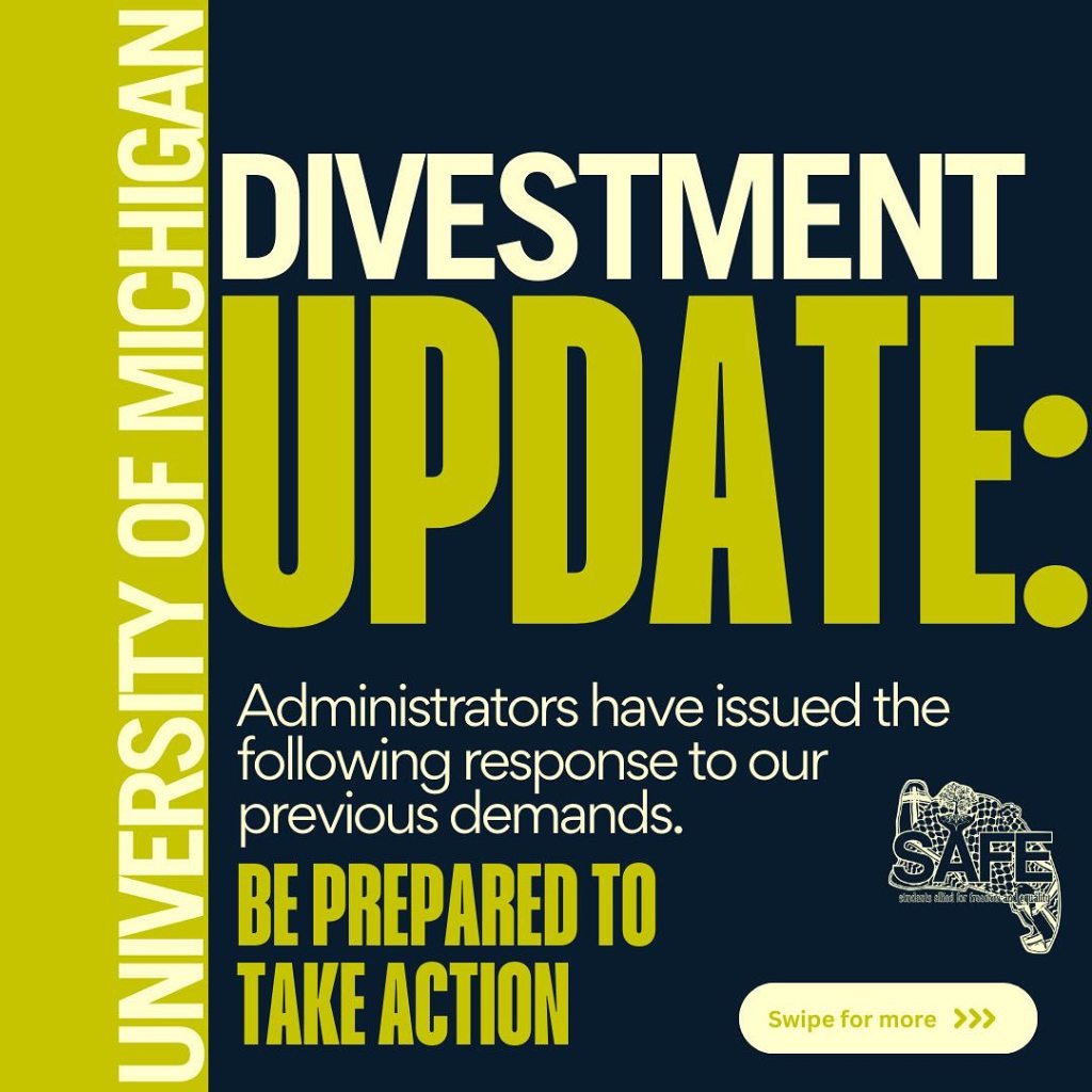 We won’t stop until @uofmichigan divests from Israel occupation, apartheid and genocide of Palestinian people! #freepalestine