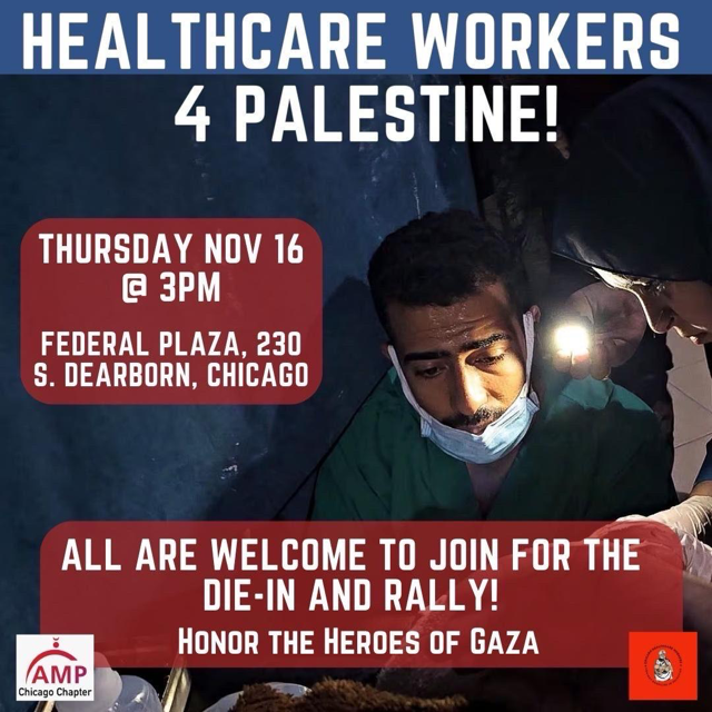 Categories Uncategorized Chicago, November 16, 2023: Healthcare Workers 4 Palestine! Post author By wibailoutpeople Post date November 15, 2023 Share this: Share on X (Opens in new window) X Share on Facebook (Opens in new window) Facebook Like Loading... Related ← Milwaukee, November 17, 2023: Shut It Down for Palestine! → Donate Now to Get Aid to Gaza