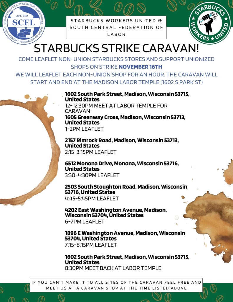 As you have done over the past several months, we are asking you again to stand with Starbucks workers on November 16, Red Cup Day, Starbucks’ busiest sales day of the year.
