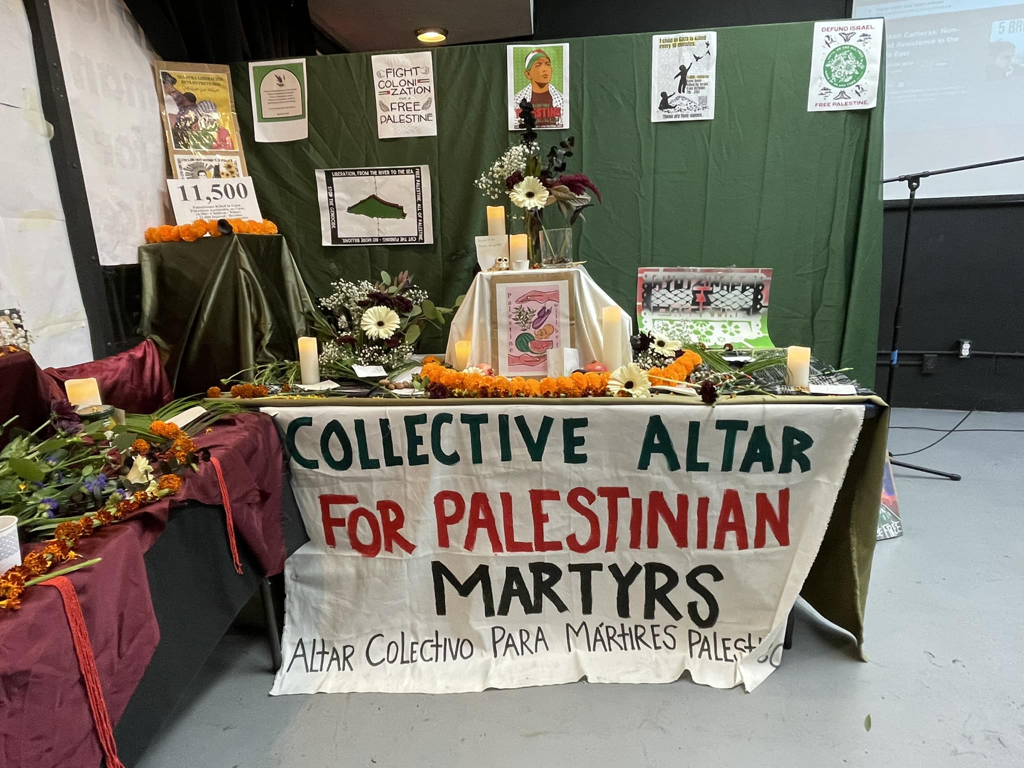 Categories Uncategorized Collective Altar for Palestinian Martyrs in L.A. Post author By wibailoutpeople Post date November 17, 2023 Harriet Tubman Center for Social Justice – L.A. Share this: Share on X (Opens in new window) X Share on Facebook (Opens in new window) Facebook Like Loading... Related ← Episode 55: In Orlando for the National March to Protect Trans Youth & Speak-out for Trans Lives → Milwaukee November 17, 2023: Solidarity With Palestine! Rally and March on the Journal Sentinel (Video)