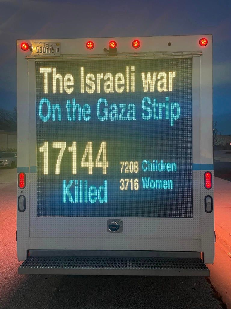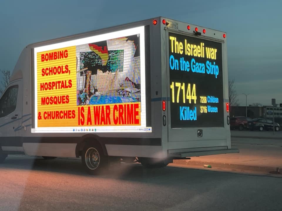 Categories Uncategorized Milwaukee, WI: Stop the U.S.-Israeli Genocidal Apartheid! – Free Palestine! Car Caravan 11/24/23 Post author By wibailoutpeople Post date November 24, 2023 Stop the U.S. – Israeli genocidal apartheid! Free Palestine! car caravan 11/24/23 Share this: Share on X (Opens in new window) X Share on Facebook (Opens in new window) Facebook Like Loading... Related ← Free Palestine drive thru solidarity and solidarity with Starbucks workers in Milwaukee 11/24/23! – No pride in occupation! → Thousands March in Havana for Palestine