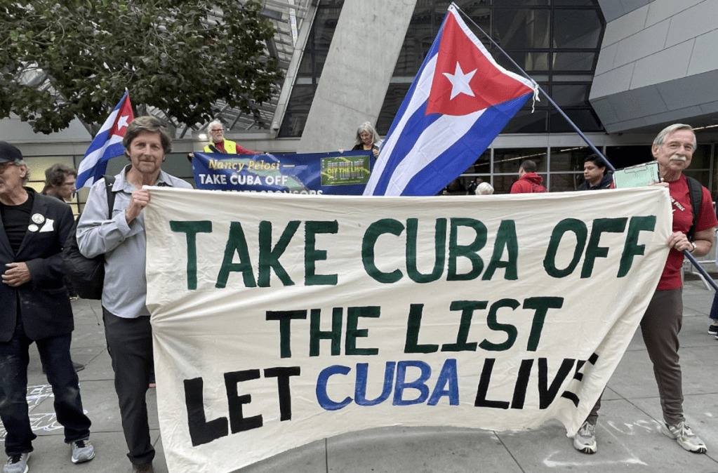 Categories Uncategorized Cuba solidarity activists rally in SF as U.N. overwhelmingly calls for end to embargo Post author By wibailoutpeople Post date November 28, 2023 On November 2, the United Nations General Assembly voted 187-2 (US and Israel voting no), with one abstention (Ukraine) to condemn the United States economic, commercial, and financial embargo of Cuba. This is the 31st time that such an overwhelming majority of nations criticized the US’s unilateral coercive measures against Cuba. Representatives of many of the nations speaking before the vote also denounced the US for placing Cuba on its list of state sponsors of terrorism. Read More Share this: Share on X (Opens in new window) X Share on Facebook (Opens in new window) Facebook Like Loading... Related ← Students gather in Cuban capital, Havana, to show solidarity with the Palestinian people → BLET Members Vote to Authorize Strike at SEPTA