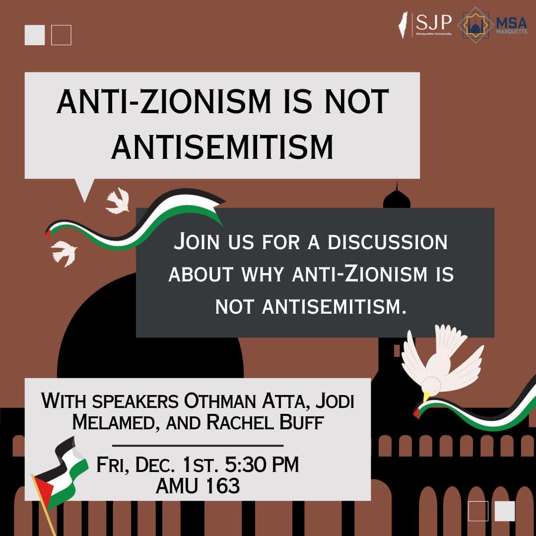 Categories Uncategorized Milwaukee, December 1, 2023: Anti-Zionism is NOT Anti-Semitism Post author By wibailoutpeople Post date November 29, 2023 Islamic Society of Milwaukee Share this: Share on X (Opens in new window) X Share on Facebook (Opens in new window) Facebook Like Loading... Related ← Wisconsin Bail Out the People Movement to Join All Out for Palestine Rally & March at the State Capitol in Madison Saturday, December 9, 2023 → UW-Milwaukee December 11, 2023: Honor the Martyrs of Palestine! – Change the Name of the UWM Library!
