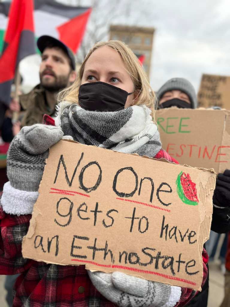 Categories Uncategorized Eau Claire, December 15, 2023: Stand for Peace! Post author By wibailoutpeople Post date December 10, 2023 Monthly Peace Stand 5-6 P.M. Wisconsin 93 – Trunk & Golf Road helpsmeet@usa.net https://www.wnpj.org/event-calendar Wisconsin All Out for Palestine December 9, 2023 / Photo: Wisconsin Bail Out The People Movement Share this: Click to share on X (Opens in new window) X Click to share on Facebook (Opens in new window) Facebook Like Loading... Related ← UW Marquette, December 13, 2023: Rabbi Brant Rosen: Vision of a Shared Future with Palestinians → Viroqua, December 16 and 23 and 30, 2023: Weekly Palestinian Solidarity Vigil